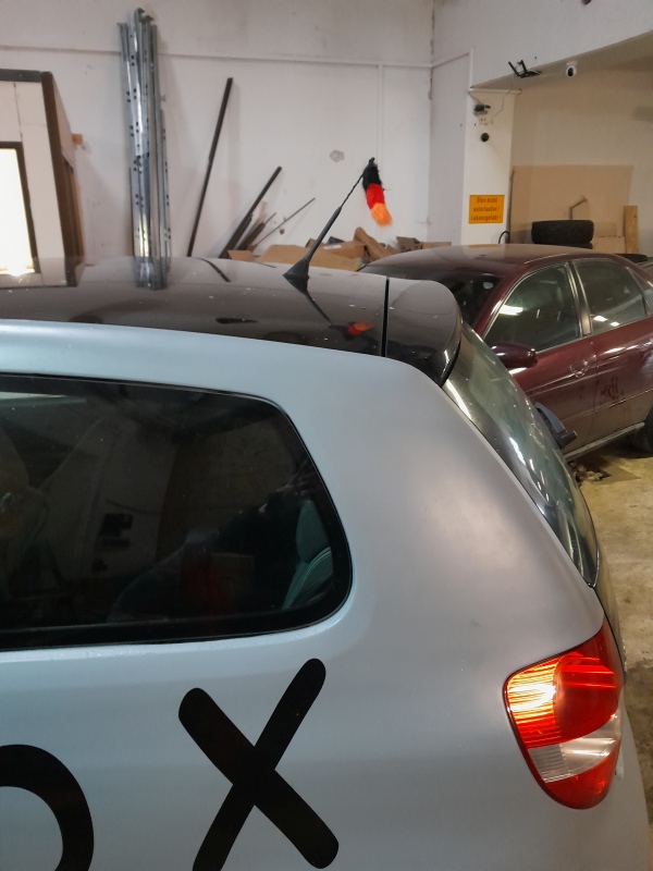 Bis die Teile da sind hab ich den FOX mal angemeldet. Rund 45 Euro ist man dafür los plus Kennzeichen drucken und Fahrerei. Ach und ne Dose Schwarz glanz stand auch noch rum
