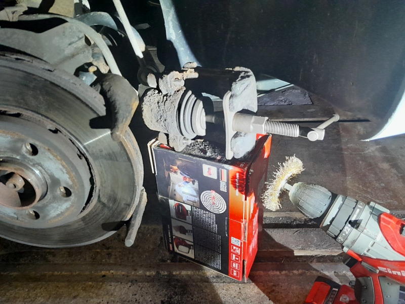Eine Woche später also den Fox abgegben. Zeitgleich habe ich gesagt das die Handbremse derzeit bitte nicht benutzt werden soll. ( Der Hebel in der Trommel setzt sich hin und wieder fest. Selbiges Problem wird später von mir selbst gelöst mit neuen Trommeln und Backen. )